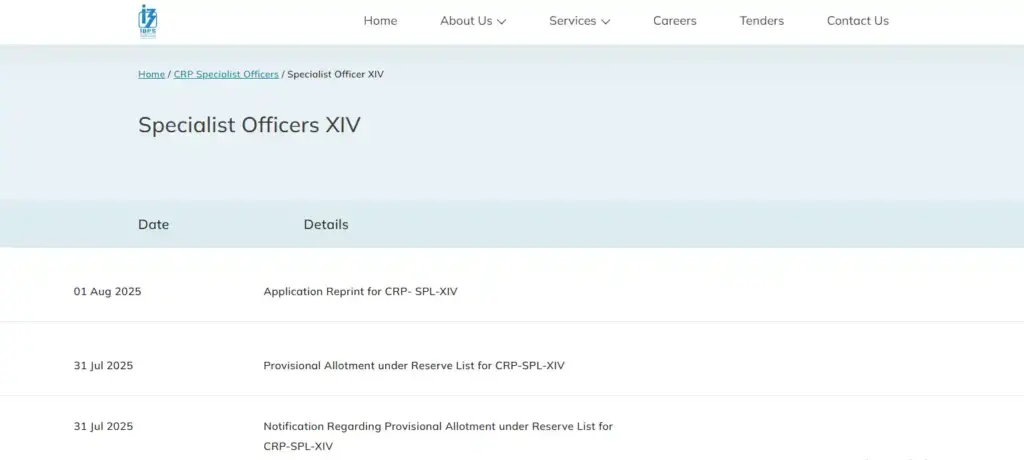 रिजल्ट सर्च करें: फिर जिस ईयर का रिजल्ट चाहिए उस पर क्लिक करें, जैसे ‘CRP Specialist Officers XV’ ये लेटेस्ट 2025 के लिए है।