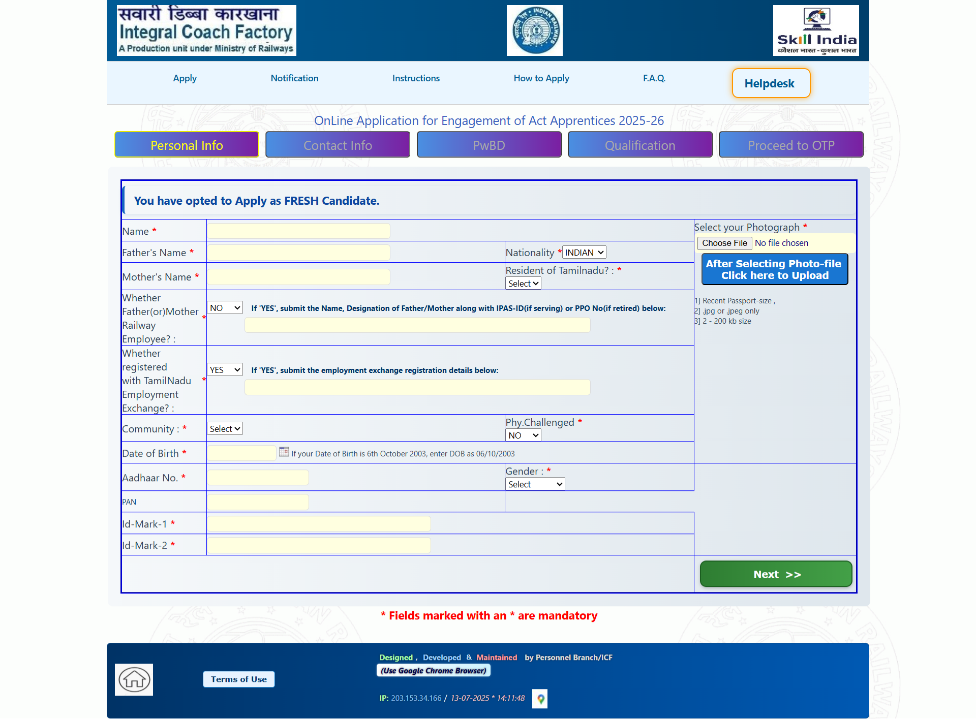 हमारे देश के जो भी इच्छुक उम्मीदवार Integral Coach Manufacturing facility Apprentice Bharti 2025 के तहत अपना ऑनलाइन आवेदन करना चाहते हैं उन्हें अपना आआवेदन करने के लिए नीचे बताई गई आवेदन प्रक्रिया फॉलो करनी होगी –