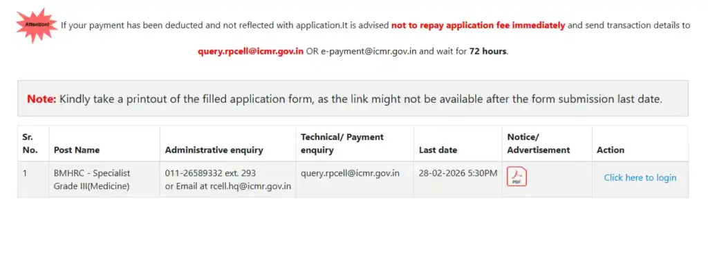 ICMR Specialist Grade III Recruitment 2026 Software Payment