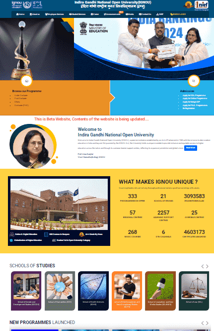 • IGNOU BEd Entrance Examination Outcome 2025 को चेक व डाउनलोड करने के लिए सबसे पहले आपको इग्नू की Official Web site के होम – पेज पर आना होगा जो कि, इस प्रकार का होगा –