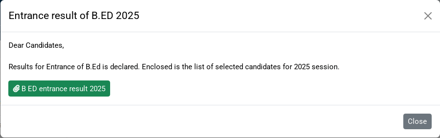 • अब यहां पर आपको B ED entrance end result 2025 का विकल्प मिलेगा जिस पर आपको क्लिक करना होगा,