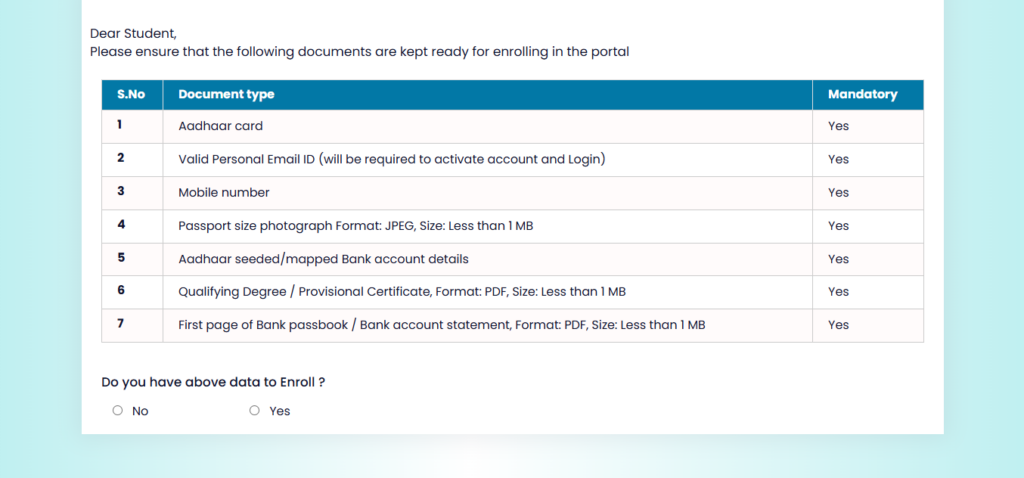 उम्मीदवार के पास Aadhaar Seeded और DBT Enabled बैंक खाता होना अनिवार्य है।