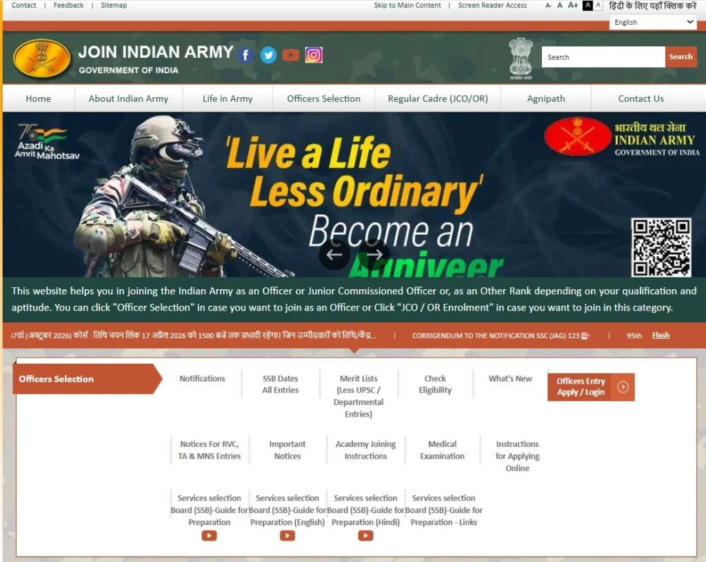 - सबसे पहले इंडियन आर्मी की आधिकारिक वेबसाइट joinindianarmy.nic.in पर जाएं।