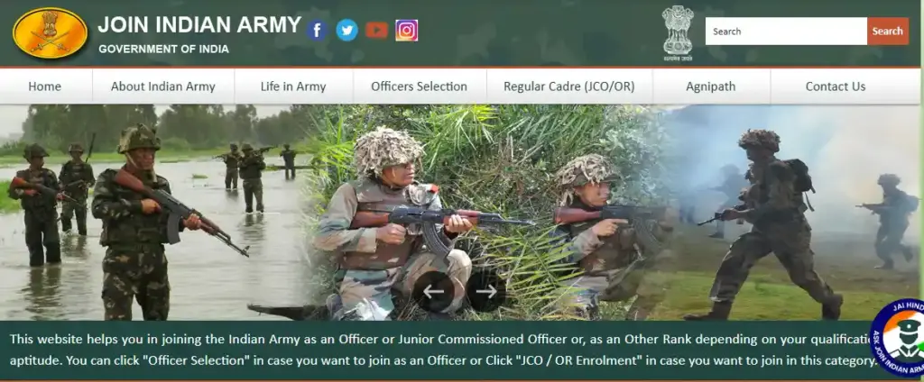 • सबसे पहले आपको Indian Military की आधिकारिक वेबसाइट joinindianarmy.nic.in पर आना होगा।