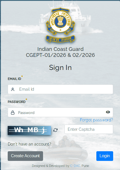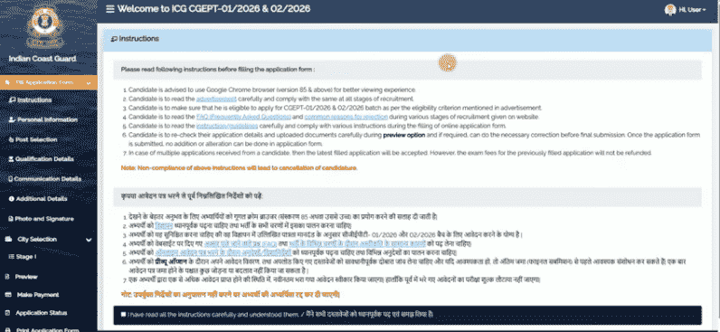Step 2 – Login & Apply On-line In Indian Coast Guard GD DB Yantrik Recruitment 2025