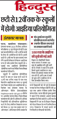 25 जून तक प्रखंड पर होगा बैठकों का आयोजन – INSPIRE Award 2025-26?