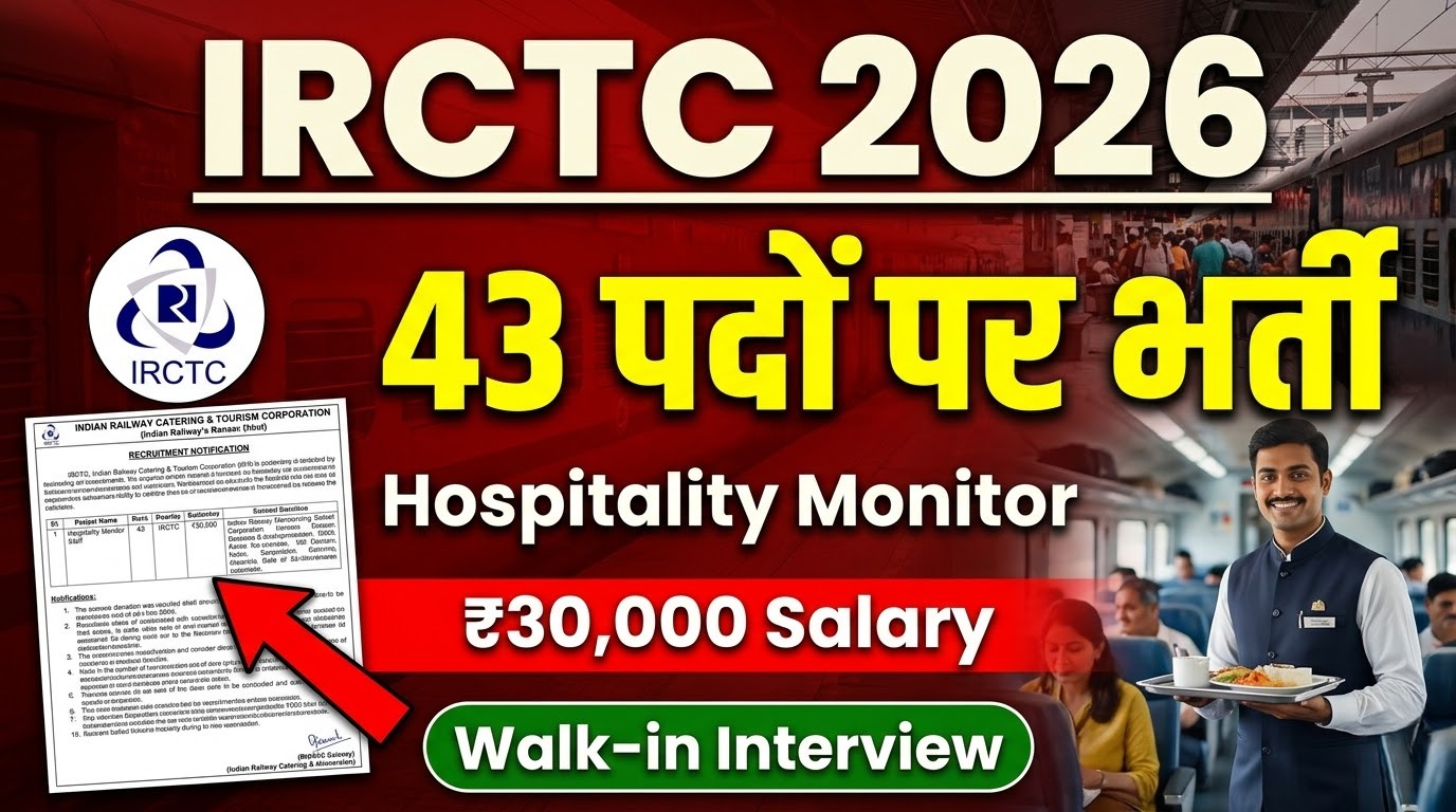 इस लेख में हम आपको IRCTC Hospitality Screens Recruitment 2026 की सारी जरूरी जानकारी देंगे। जैसे Emptiness Particulars, Eligibility Standards, Choice Course of, Remuneration, Paperwork और Stroll-in कैसे दें आदि। तो लेख को अंत तक पूरा जरूर पढ़ें। और लेख के अंत में हम आपको आवेदन फॉर्म और वेन्यू की डिटेल्स भी देंगे, ताकि आप आसानी से इंटरव्यू में शामिल हो सकें।