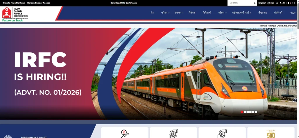 • सबसे पहले IRFC की ऑफिशियल वेबसाइट www.irfc.co.in पर जाएं।