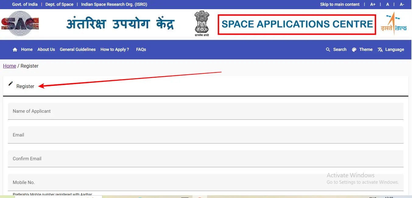 - सबसे पहले आपको स्पेस एप्लीकेशन सेंटर की आधिकारिक वेबसाइट पर जाना होगा।