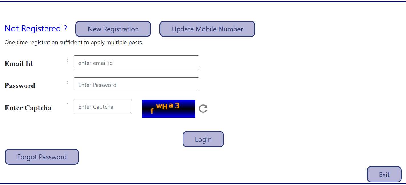 - रजिस्ट्रेशन प्रोसेस पूरा होने के बाद आपको जिस भर्ती में आवेदन कर रहे हैं उसके LOGIN पर क्लिक करना है।