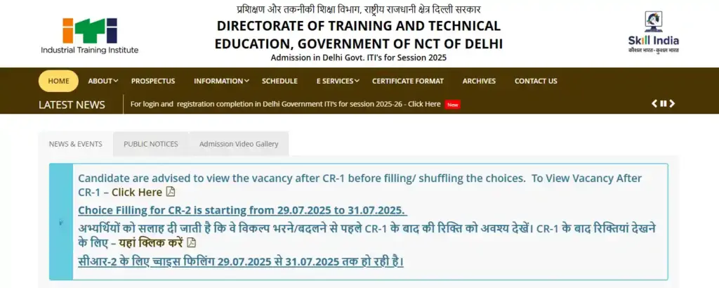 Official Delhi ITI website to check ITI Dress Making course details and apply for admission online