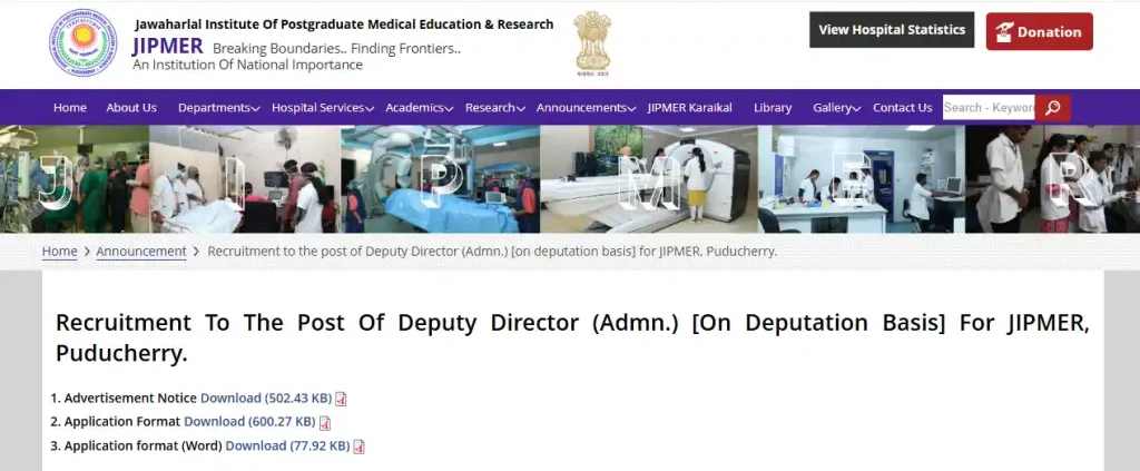 - सबसे पहले JIPMER वेबसाइट www.jipmer.edu.in पर जाएं।