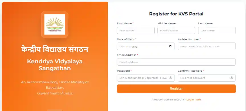 Registration form image for KVS Samvida Sathi Portal 2026