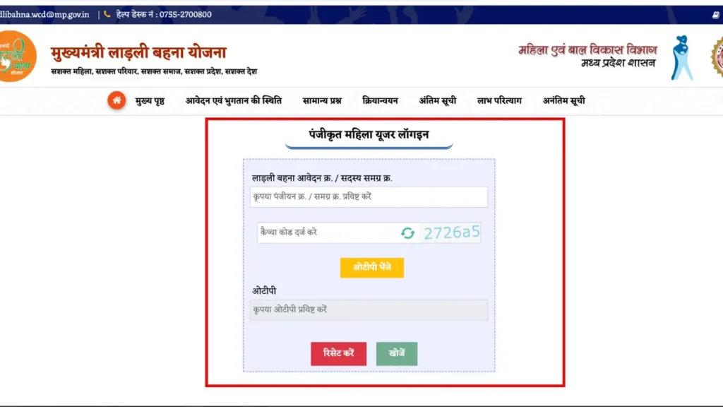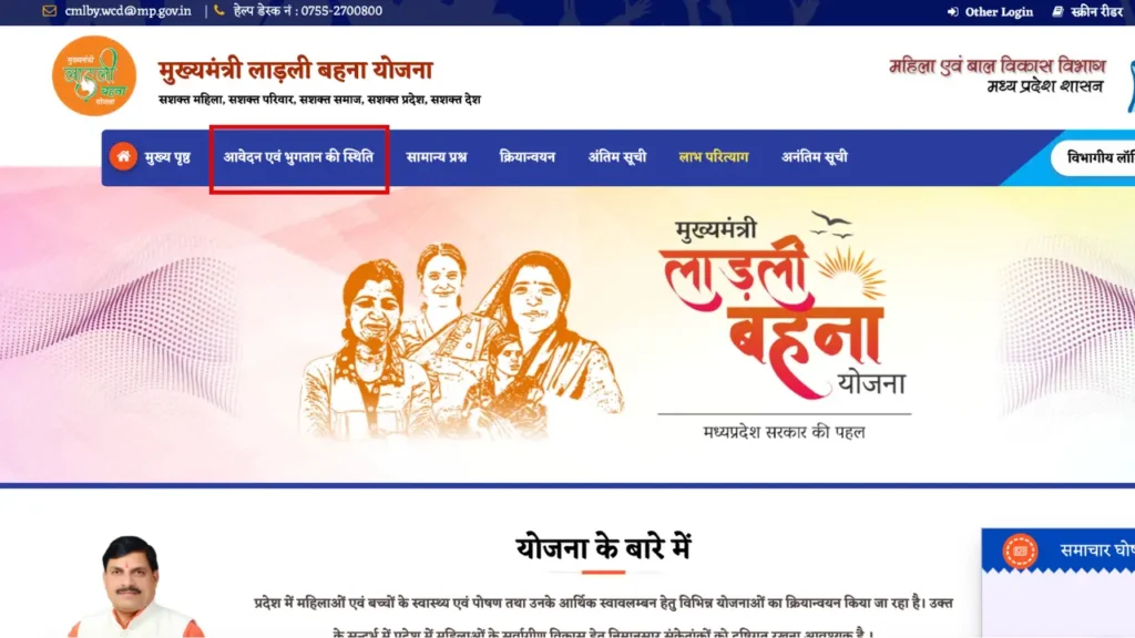 • सबसे पहले, आप लाडली बहना योजना की आधिकारिक वेबसाइट https://cmladlibahna.mp.gov.in/ पर जाएँ।