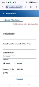 - तो यहां सही से पॉलिसी नंबर, इंस्टॉलमेंट प्रीमियम बिना टैक्स, जन्म तिथि, लिंग, कंट्री कोड, चालू मोबाइल नंबर, ईमेल आईडी, पैन कार्ड की संख्या, उपलब्ध होने पर पासपोर्ट नंबर भरना है.