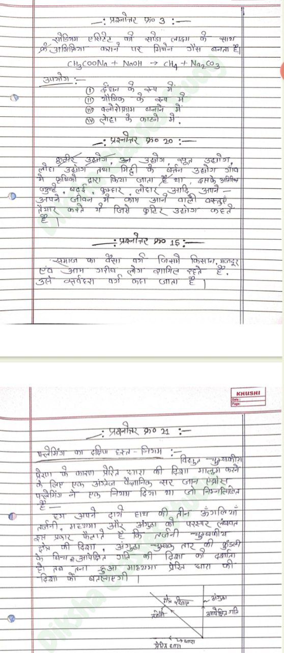 • यदि प्रश्न है “प्रकाश का अपवर्तन क्या होता है?”, तो इसमें प्रिज्म का उदाहरण देकर समझाएं और एक सरल चित्र बनाकर उत्तर को प्रभावशाली बनाएं।