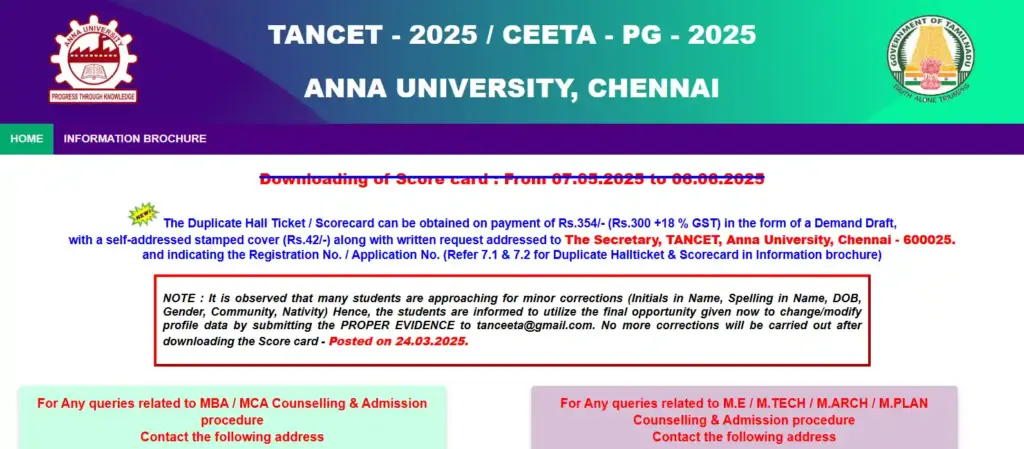 Official CEETA-PG 2025 website for M.Tech admissions in Tamil Nadu conducted by Anna University, Chennai