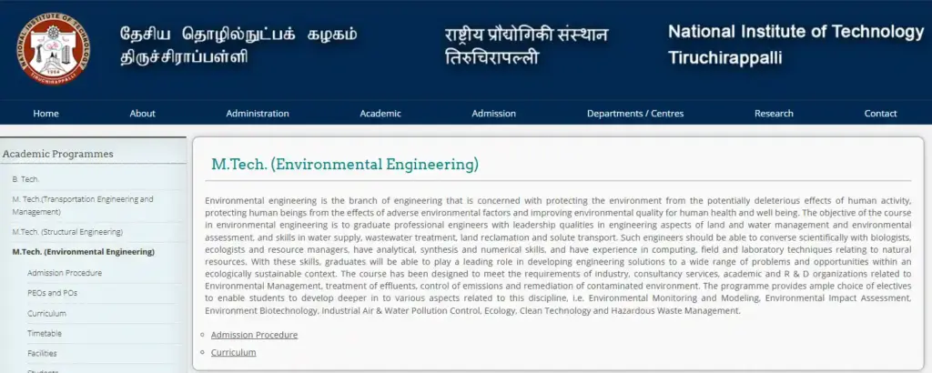 M.Tech in Environmental Engineering |