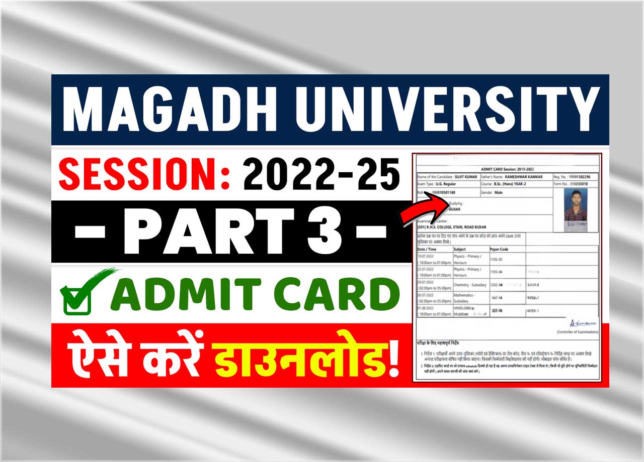 तमाम महिला एवं पुरुष परीक्षार्थी को प्रवेश पत्र डाउनलोड करने में किसी प्रकार का समस्या का सामना न करना पड़े इसके लिए हम आपको विस्तार रूप से इस आर्टिकल के माध्यम से How To Obtain Magadh College Half 3 Admit Card 2022-25 नामक तैयार रिपोर्ट की पूरी पूरी जानकारी प्रदान करेंगे जिसे पढ़कर बहुत ही आसानी से एडमिट कार्ड डाउनलोड कर सकते हैं..