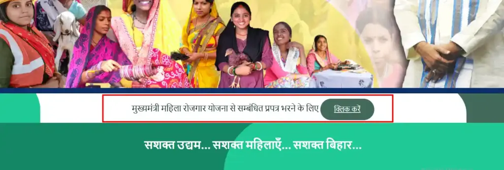 होम पेज पर आपको “मुख्यमंत्री महिला रोजगार योजना से सम्बंधित प्रपत्र भरने के लिए” के सामने “क्लिक करें” की ऑप्शन दिखेगी वहाँ क्लिक करें।