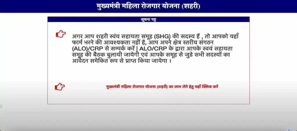 Option for मुख्यमंत्री महिला रोजगार योजना (शहरी) का लाभ लेने हेतु यहां क्लिक करें