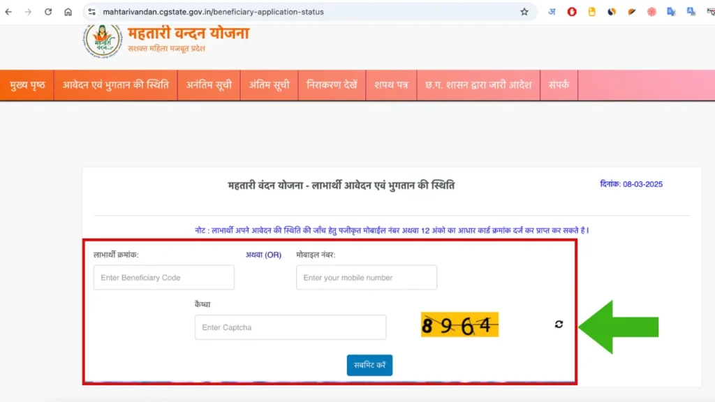 - सबमिट के बाद अब महतारी वंदन योजना की 13वीं किस्त का स्टेटस दिखाई देगा।