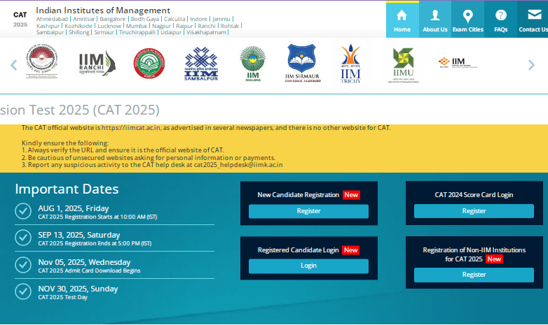The CAT 2025 registration course of will start from August 1, 2025. Aspirants will have the ability to fill the CAT utility kind 2025 on the official web site: iimcat.ac.in. The registration course of for CAT 2025 will embody making a login, filling the web utility kind filling, importing paperwork and fee of charge.