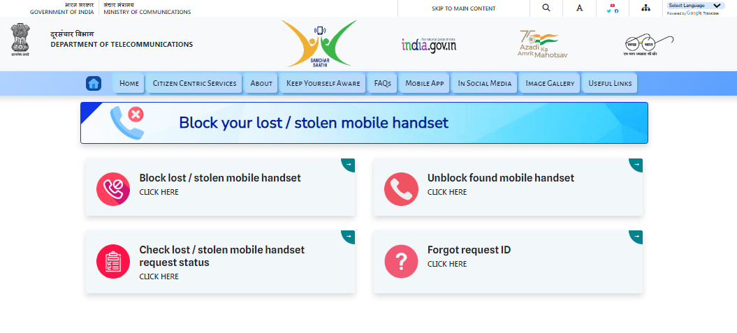 - Cell Telephone Block Kaise Kare के लिए सबसे पहले इसकी Official Web site के होम – पेज पर आना होगा जो कि, इस प्रकार का होगा –