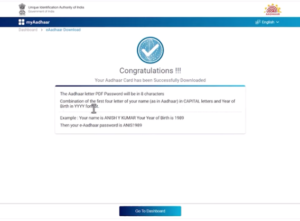 - अब यहां पर आप देख सकते है कि, आपका आधार कार्ड के डाउनलोड होने का संदेश मिलेगा,