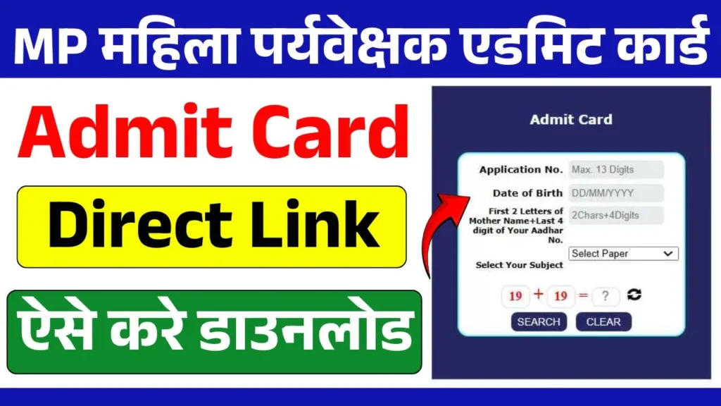 MP Mahila Paryavekshak Admit Card 2025 Direct Link Out : महिला पर्यवेक्षक का एडमिट कार्ड डाउनलोड करें