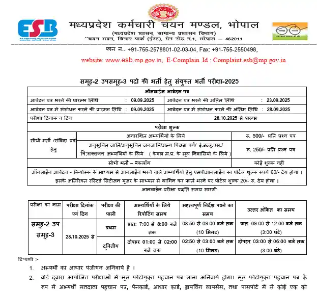 MPESB Group 2 Sub Group 3 Recruitment 2025 |