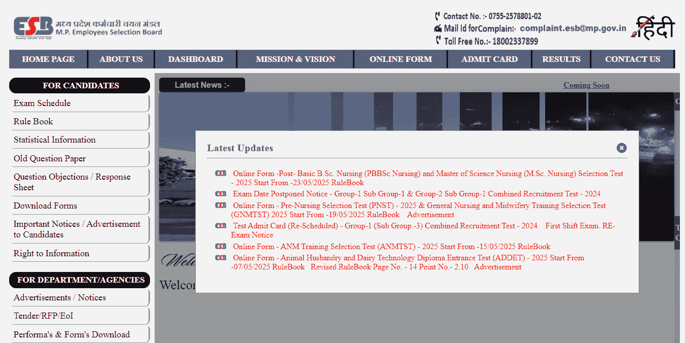 - MPESB Group-5 Paramedical Workers Recruitment 2025 मे अप्लाई करने के लिए प्रत्येक आवेदक व उम्मीदवार को सबसे पहले इसकी Official Web site के होम – पेज पर आना होगा जो कि, इस प्रकार का होगा –