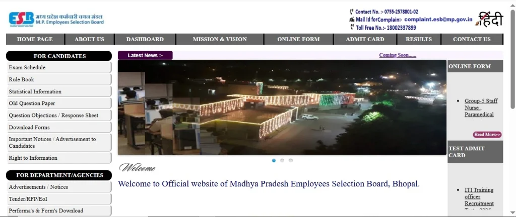 • सबसे पहले आपको MPESB की आधिकारिक वेबसाइट esb.mp.gov.in पर जाना होगा।