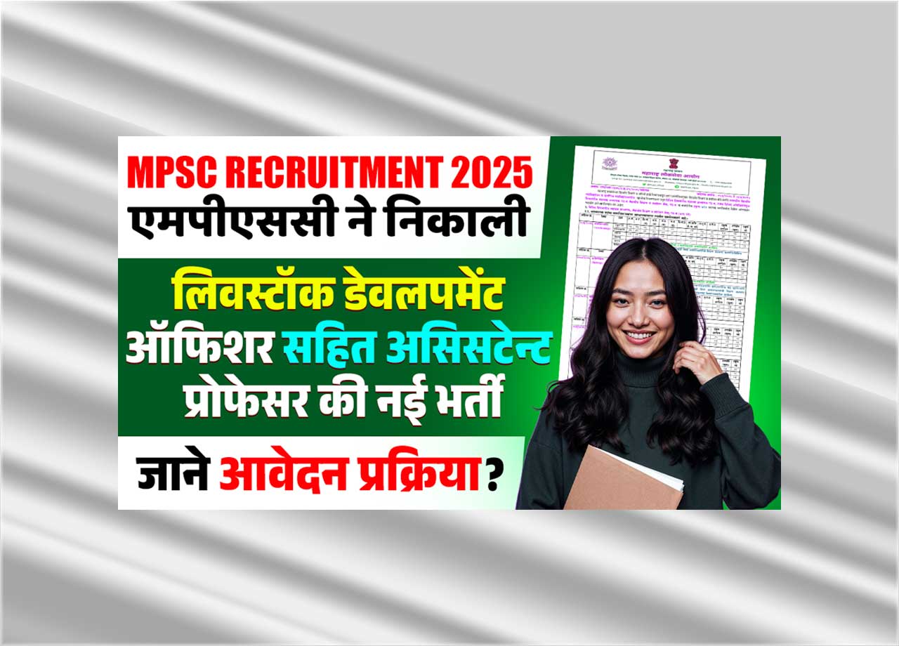 एमपीएससी ने निकाली लिवस्टॉक डेवलपमेंट ऑफिशर सहित असिसटेन्ट प्रोफेसर की नई भर्ती, जाने क्या है पूरी भर्ती और आवेदन प्रक्रिया – MPSC Recruitment 2025?
