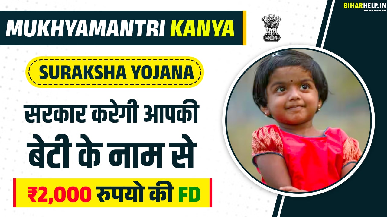 Mukhyamantri Kanya Suraksha Yojana: यदि आप भी बिहार के रहने वाले है और आपके घर मे भी बेटी है तो आपके लिए धमाकेदार खुशखबरी है कि, अब बिहार सरकार द्धारा आपकी बेटी के उज्जवल भविष्य के लिए उनके नाम से ₹ 2,000 रुपयो की FD करेगी और योजना का लाभ आप सभी बालिकायें प्राप्त कर सकें इसके लिए हम, आपको विस्तार से Mukhyamantri Kanya Suraksha Yojana के बारे मे बतायेगें जिसके लिए आपको धैर्यपूर्वक इस आर्टिकल को पढ़ना होगा ताकि आप पूरी – पूरी जानकारी प्राप्त कर सकें।