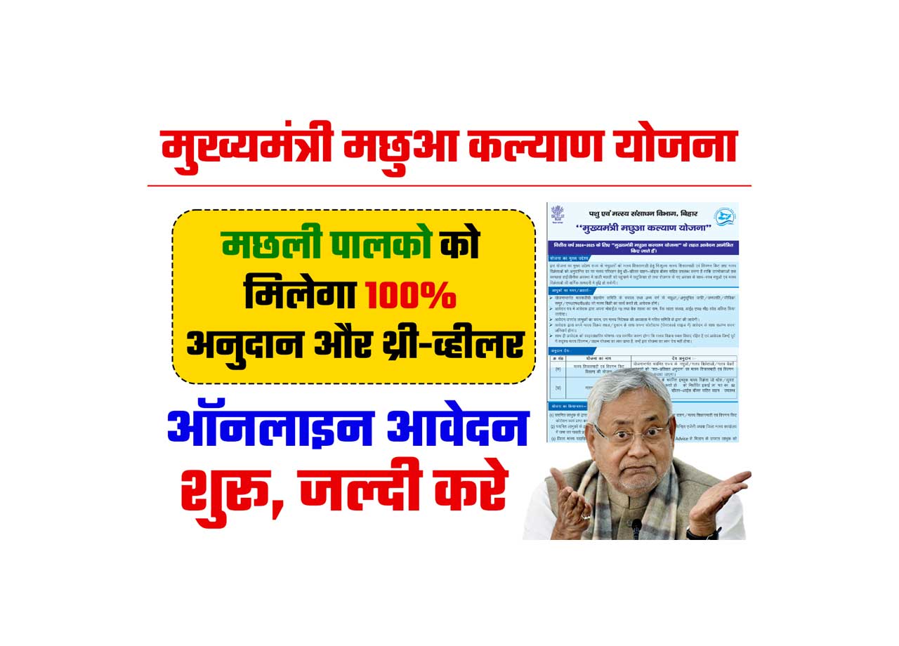 Mukhyamantri Machua Kalyan Yojana 2025: क्या आप भी मछुआरा है और शत प्रतिशत अनुदान के साथ ही साथ थ्री व्हीलर वाहन का लाभ प्राप्त करना चाहते है तो हमारा यह आर्टिकल केवल और केवल आपके लिए है जिसमे हम, आपको बिहार सरकार की बिहार मछुआ कल्याण योजना अर्थात् Mukhyamantri Machua Kalyan Yojana 2025 के बारे मे बतायेगें ताकि आप पूरी – पूरी जानकारी प्राप्त कर सकें।