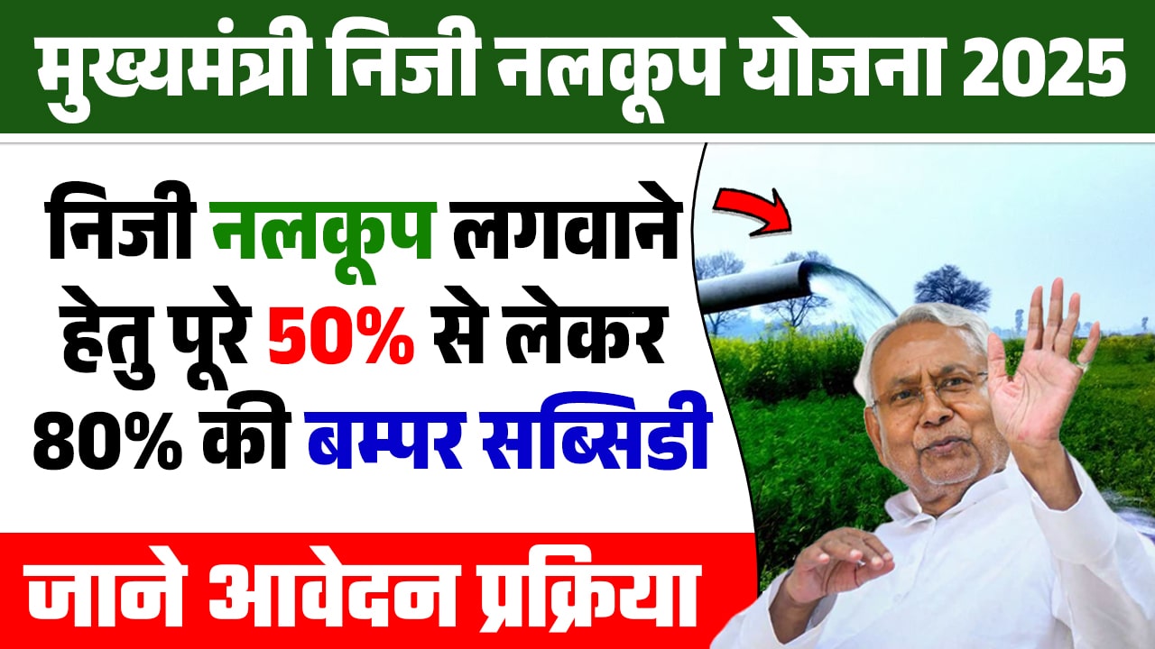 Mukhyamantri Niji Nalkup Yojana 2025: क्या आप भी अपने खेतोें की भरपुर सिंचाई हेतु अपने खेतों मे बोरवेल लगवाने हेतु सरकारी सब्सिडी का लाभ प्राप्त करना चाहते है तो आपके लिए बड़ी खबर है कि, बिहार सरकार द्धारा आपको निजी नलकूप योजना के तहत भारी सब्सिडी दी जा रही है जिसका लाभ आप सभी प्राप्त कर सके इसके लिए हम, आपको इस आर्टिकल मे विस्तार से Mukhyamantri Niji Nalkup Yojana 2025 के बारे मे बतायेगें जिसके लिए आपको धैर्यपूर्वक इस आर्टिकल को पढ़ना होगा ताकि आप पूरी – पूरी जानकारी प्राप्त कर सकें।