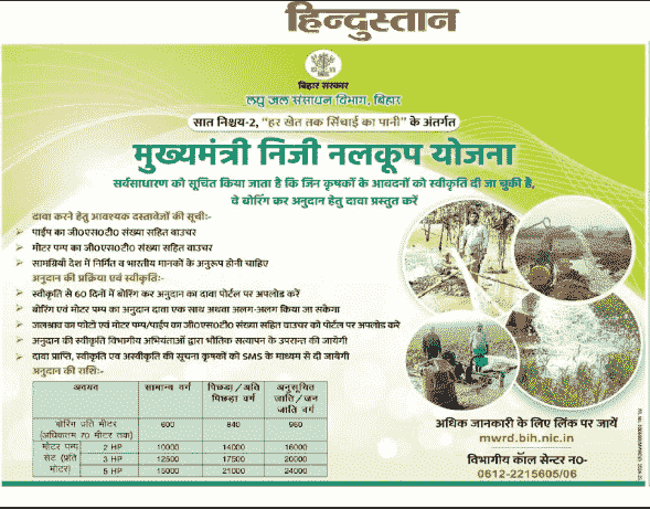 • Mukhyamantri Niji Nalkup Yojana 2025 मे आवेदन करने हेतु सभी आवेदक, बिहार राज्य का मूल निवासी होना चाहिए,