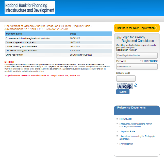 स्टेप 2 – पोर्टल मे लॉगिन करके NABFID Financial institution Analyst Grade Recruitment 2025 मे ऑनलाइन आवेदन करें