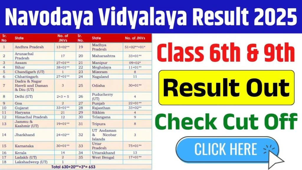 • Navodaya Vidyalaya Outcome 2025