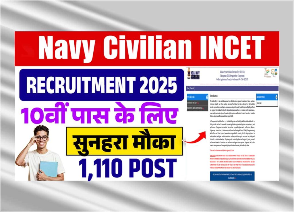 Navy Civilian INCET Recruitment 2025 Online Apply For 1110 Vacancies – 10वीं पास वालों के लिए 1110 पदों पर भर्ती शुरू!