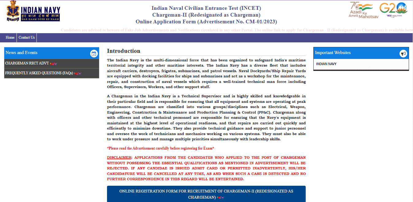 • Navy Civilian INCET Recruitment 2025 मे, ऑनलाइन आवेदन करने के लिए सबसे पहले आपको इसकी आधिकारीक वेबसाइट के होम – पेज पर आना होगा जो कि, इस प्रकार का होगा –