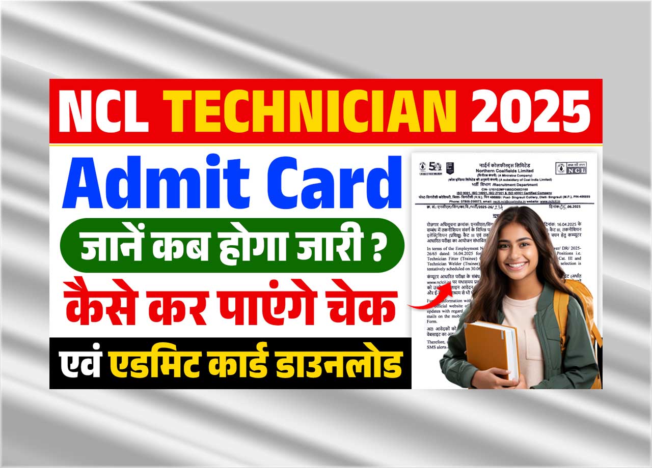 नॉर्दन कोल फील्ड्स ने टेक्निशियन का एग्जाम डेट किया जारी, जाने कब होगा एडमिट कार्ड डाउनलोड और कैसे करना होगा डाउनलोड – NCL Technician Admit Card 2025?