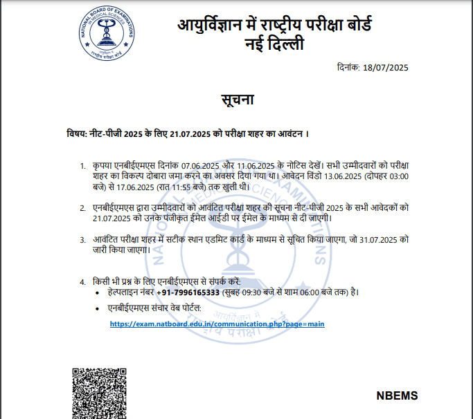 उपरोक्ट सभी स्टेप्स को फॉलो करके आप आसानी से नीट पीजी सिटी इन्टीमेशन स्लीप नोटिस 2025 को चेक व डाउनलोड कर सकते है औऱ इसका लाभ प्राप्त कर सकते है।
