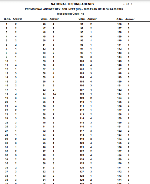Dirct Hyperlink To Test NEET UG Reply Key 2025 |