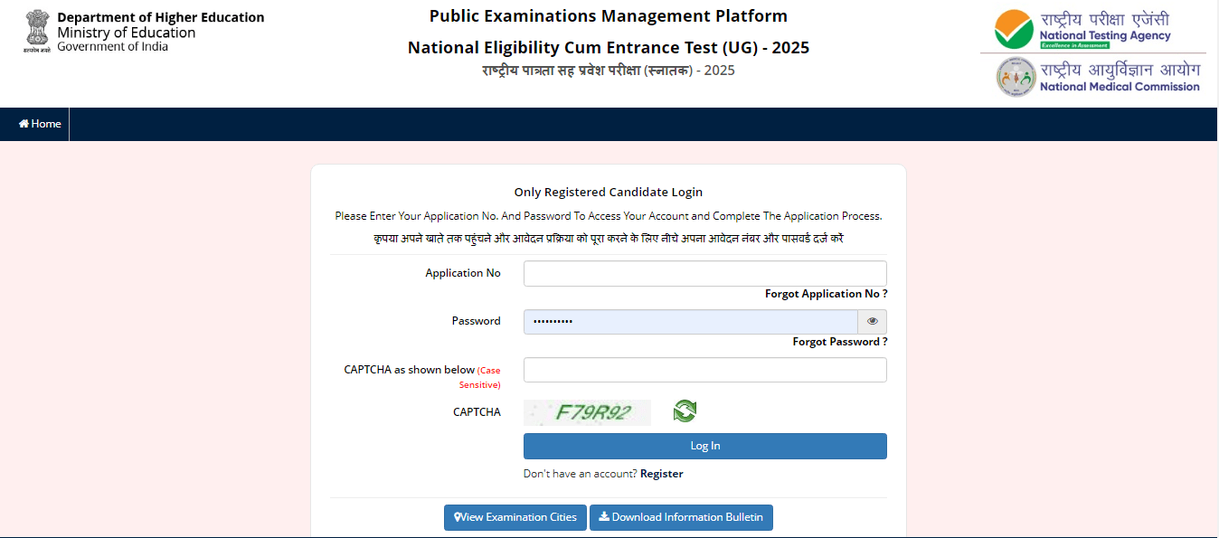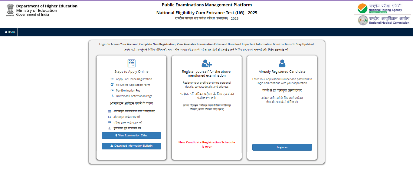 - NEET UG Reply Key 2025 को Problem / आपत्ति दर्ज करने के लिए सबसे पहले आपको इसकी Official Web site के होम – पेज पर आना होगा जो कि, इस प्रकार का होगा –