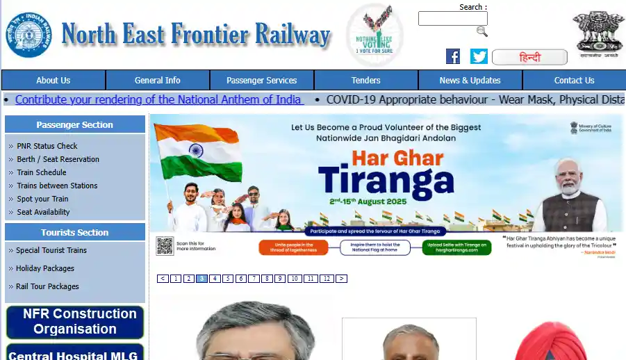 Home page of nfr.indianrailways.gov.in website