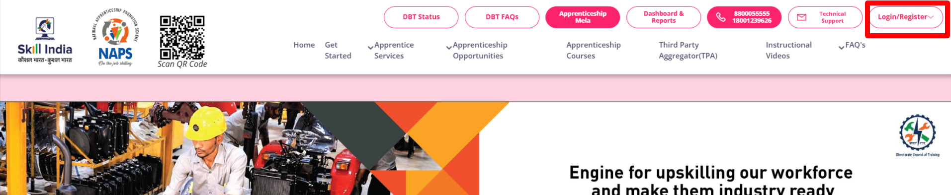 - ITI Trades तहत अपना ऑनलाइन आवेदन करने के लिए आपको सबसे पहले NAPS Portal पर जाना होगा।
