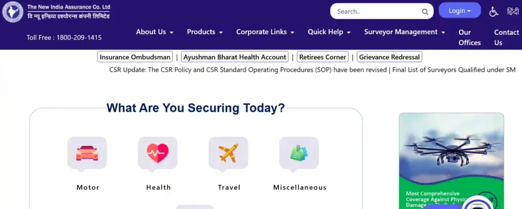 - सबसे पहले The New India Assurance Firm Ltd. की आधिकारिक वेबसाइट newindia.co.in पर जाना होगा।