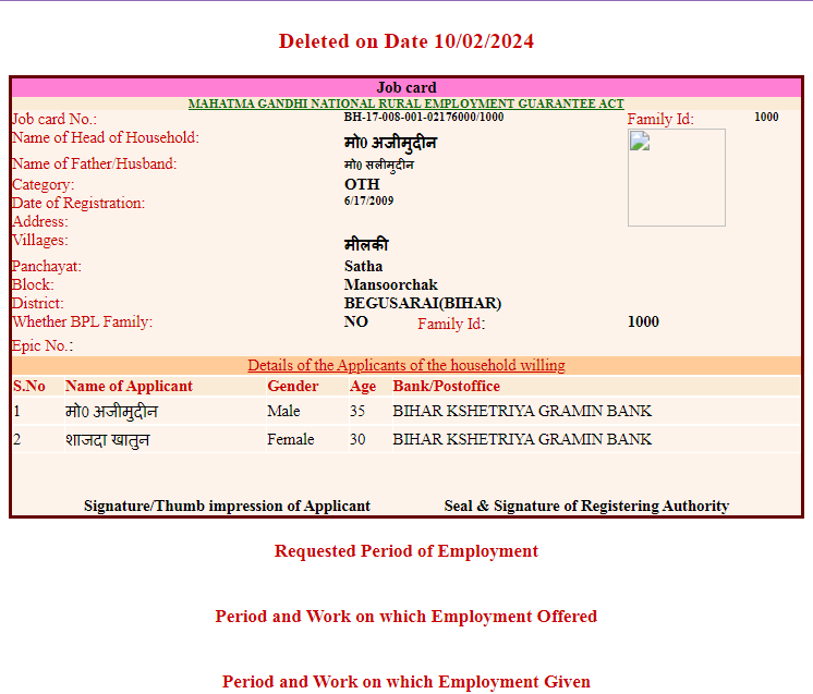 NREGA Job Card |